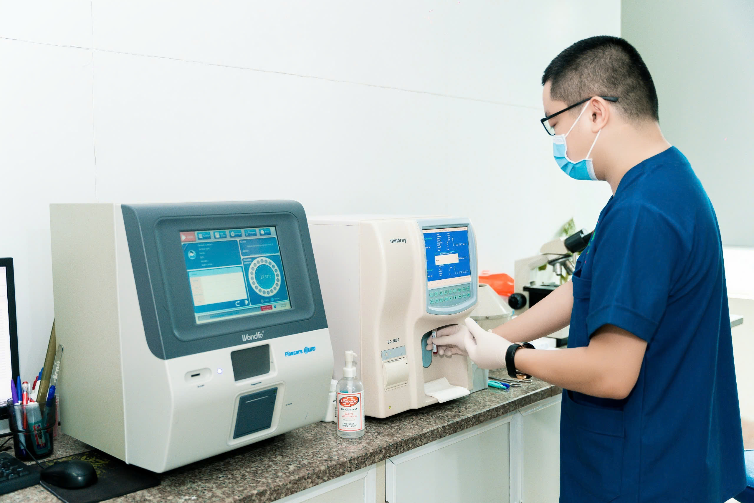 Bước 3: Mẫu sinh học sẽ được phân tích bằng các thiết bị hiện đại và kiểm tra bởi các kỹ thuật viên xét nghiệm.